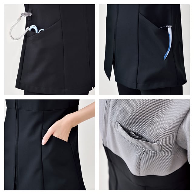 ◇左胸・両脇ポケット付、後ろファスナー開き、後ろベンツ