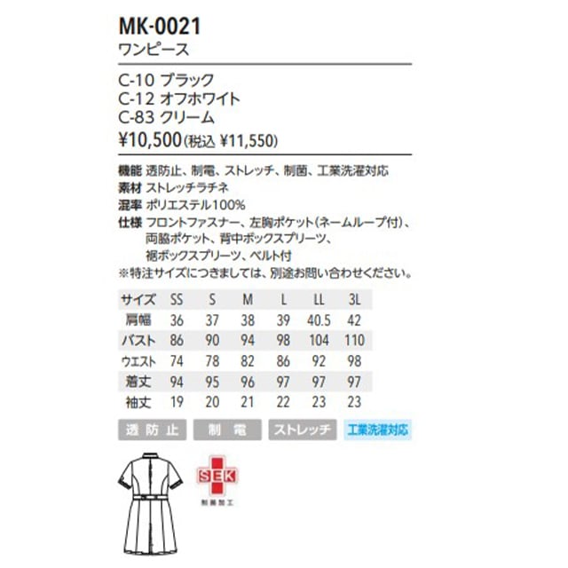 制菌、静電加工のほか、アンダーウエアが透けにくい加工も施された、快適と安心を併せ持った生地です。前ファスナーで着脱も楽ちんです。