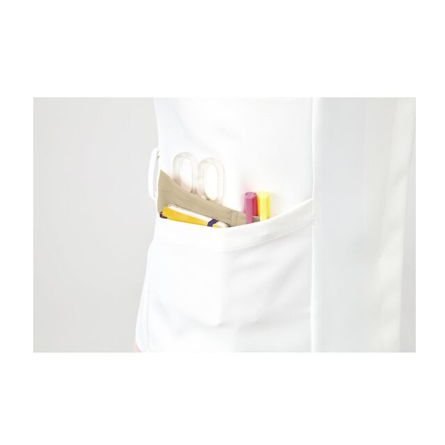 左胸ポケット、右脇スマホポケット、両脇二段ポケット(右のみ仕切りあり)、ウエストループ付