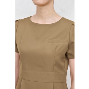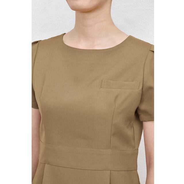肩やスカートのタックに加えベルト使い等フェミニンポイント満載。