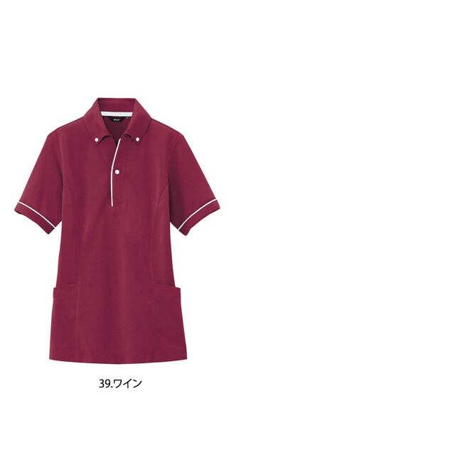 【仕様】半袖ポロシャツ、サイドポケット、パイピング、消臭テープ、ドットボタン(プラスチック)、左右ポケット、衿ボタンダウン、裾スリット
