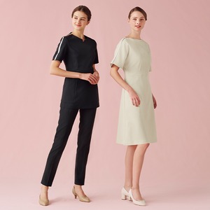軽い着心地としっかり伸びるストレッチ性能、チリやホコリが付きにくい制電性能と快適・清潔な機能が充実した生地を使用