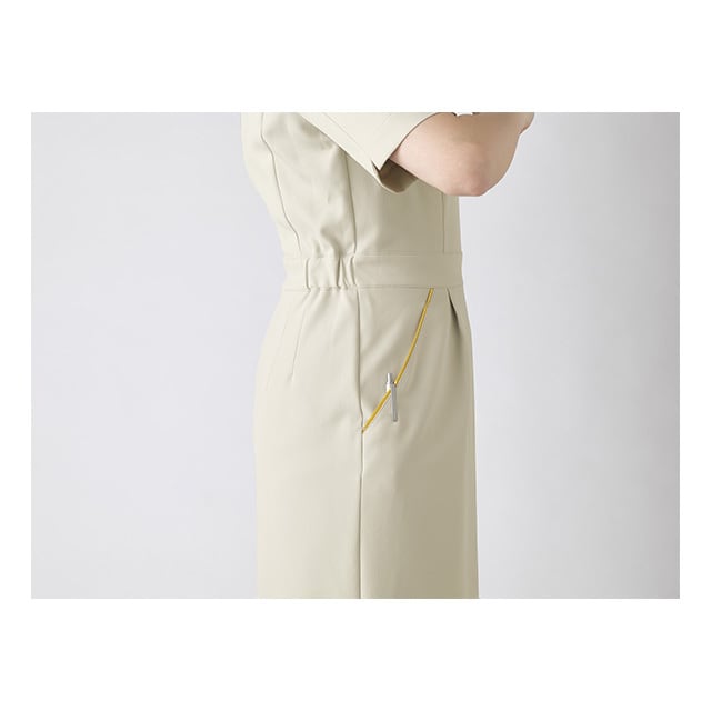 軽い着心地としっかり伸びるストレッチ性能、チリやホコリが付きにくい制電性能と快適・清潔な機能が充実した生地を使用