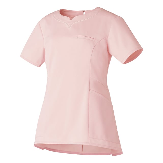 作業のしやすいスッキリとしたシルエットとラインデザインの胸元が上品なチュニック
